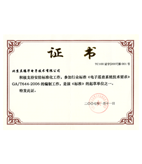 - 蘭德華公司被列為《電子巡查國(guó)家行業(yè)標(biāo)準(zhǔn)》起草單位,公司主創(chuàng)人員王兵、張韶虞作為專(zhuān)家起草人之一
